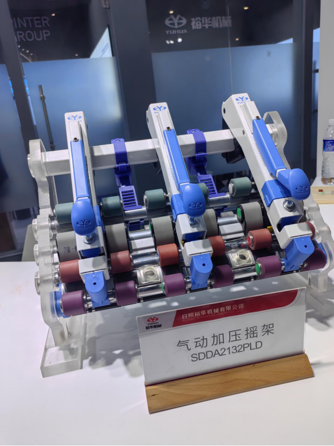 3.改变皮辊直径后可直接通过调节气压大小控制罗拉加压,操作方便;4.改变罗拉隔距后可实现有级调压,调整前中后罗拉压力分配;6.停车时可实现半释压,揺架不必撅起,皮辊不变形,再开车断头率低;11.裕华揺架采用宝钢或鞍钢板材,军工技术保证,质量可靠。预设有紧密纺改造,包芯纱改造或粗纱自停装置改造接口。