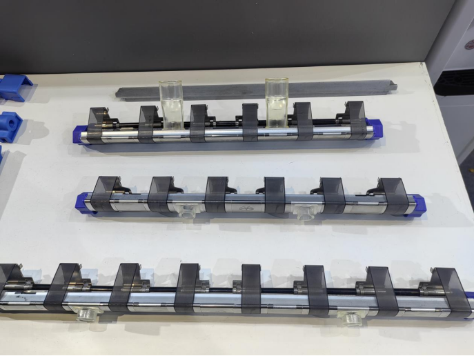 裕华专利大翻版集聚管部件涨力架大空间设计,不易积花,吹吸风可以随时清洁,揩车周期达20天以上,能减少用工,提高产量,纺纱指标更加稳定。涨力架采用优质不锈钢材质,更加坚固耐用,减少消耗。负压管附加耐磨片,具有良好的工艺互换性和耐磨性,普通紧密纺和赛络紧密纺品种切换时,只需更换耐磨片,使用寿命长。可适用于各型国产、进口长、短车的老机改造和新机配套。